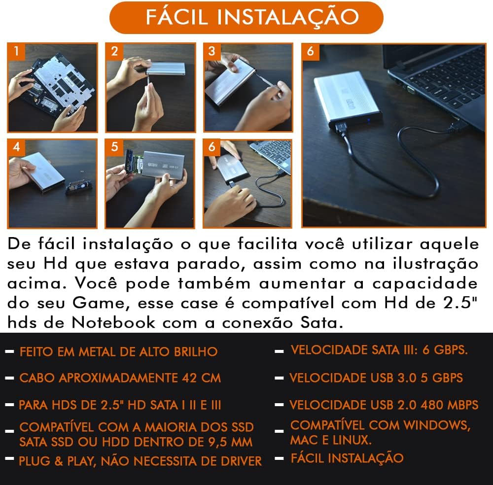 - Compatibilidade universal: O case é compatível com a maioria dos sistemas operacionais, incluindo Windows, macOS e Linux, oferecendo flexibilidade e fácil integração com diferentes dispositivos. Conecte-o ao seu PC, laptop, console de jogos ou qualquer outro dispositivo com porta USB.