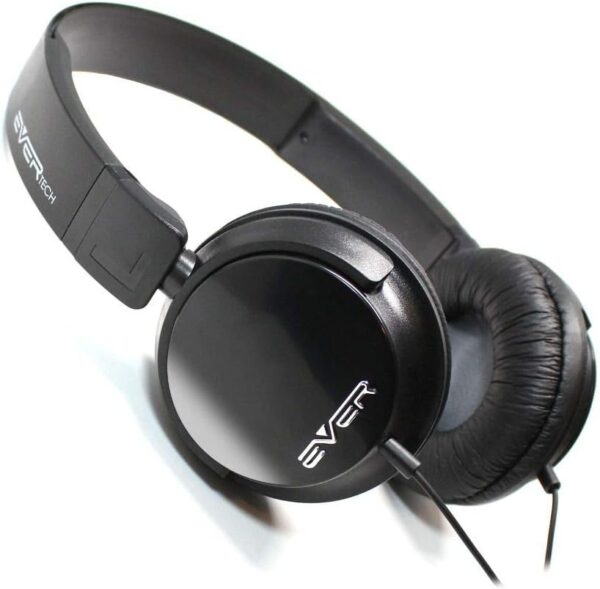 Fone de Ouvido Evertech head band com microfone, estéreo, dobrável, com hastes deslizantes, ajustáveis, conchas auditivas com espuma macia e cabo flexível de 1,2m. Som cristalino, conforto e design moderno, Perfeita experiência sonora.