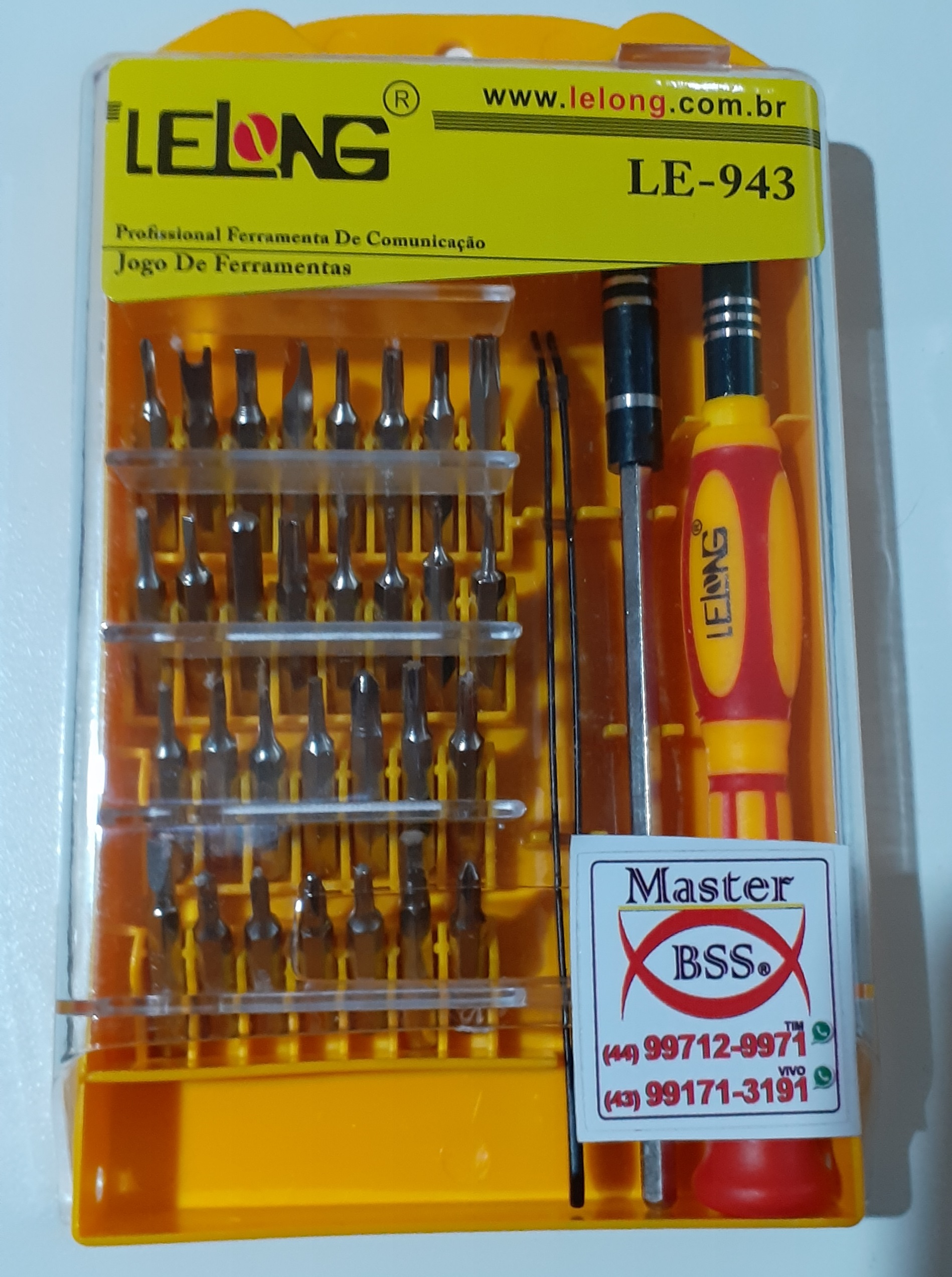 Conjunto composto por uma alça para ponteiras, um extensor, uma pinça e 42 pontas de chaves conforme demonstrado nas imagens.